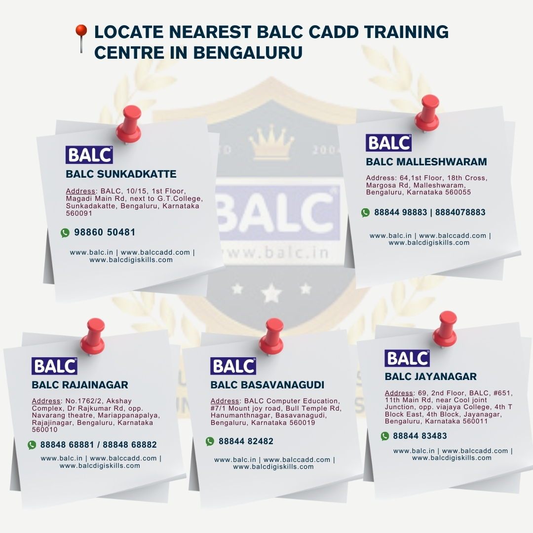 Locate to your nearest BALC CADD Training Centre in Bengaluru.