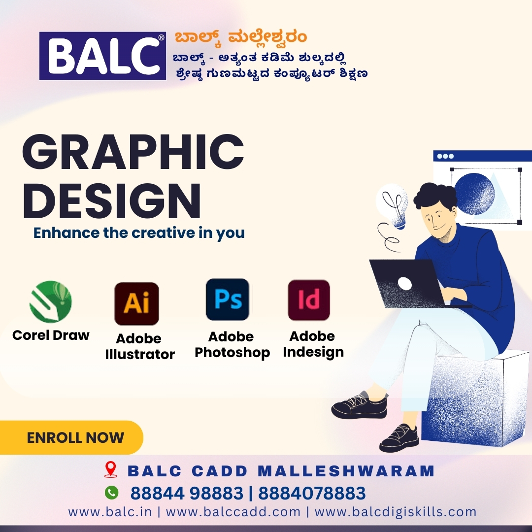 Unlock Your Creativity: Explore your artistic side and bring your ideas to life. Start leaning Graphic Design at BALC Software Training Center Malleshwaram, Bengaluru.