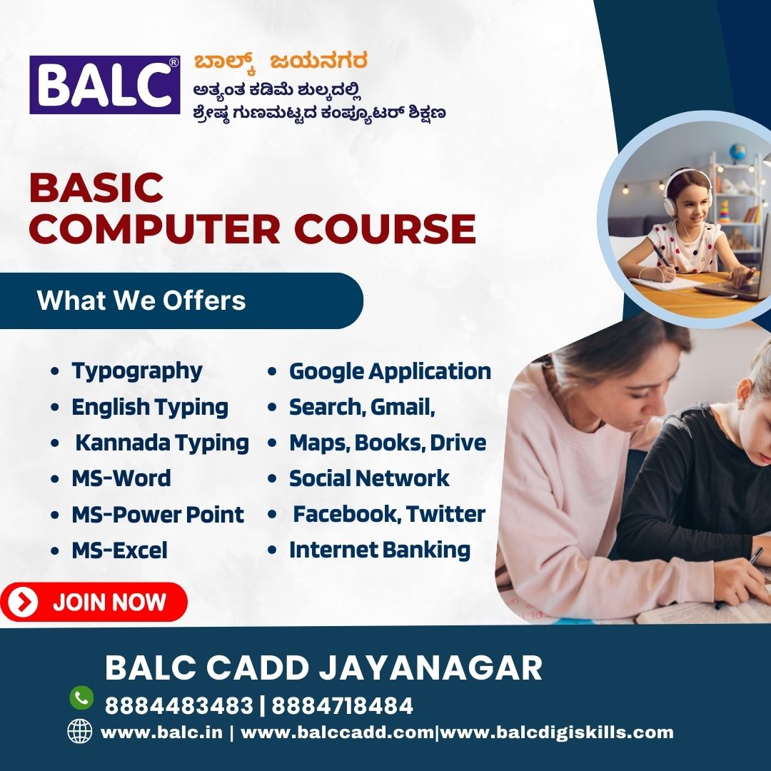 Essential Computer Skills for Modern Life. Start at BALC Software Training Center Jayanagar, Bengaluru.