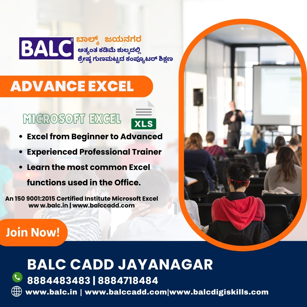 By mastering advanced Excel, you can significantly enhance your productivity, improve decision-making, and gain a competitive edge in various fields.Start Learning Excel at BALC Training Centre ,Jayanagar, Bengaluru.