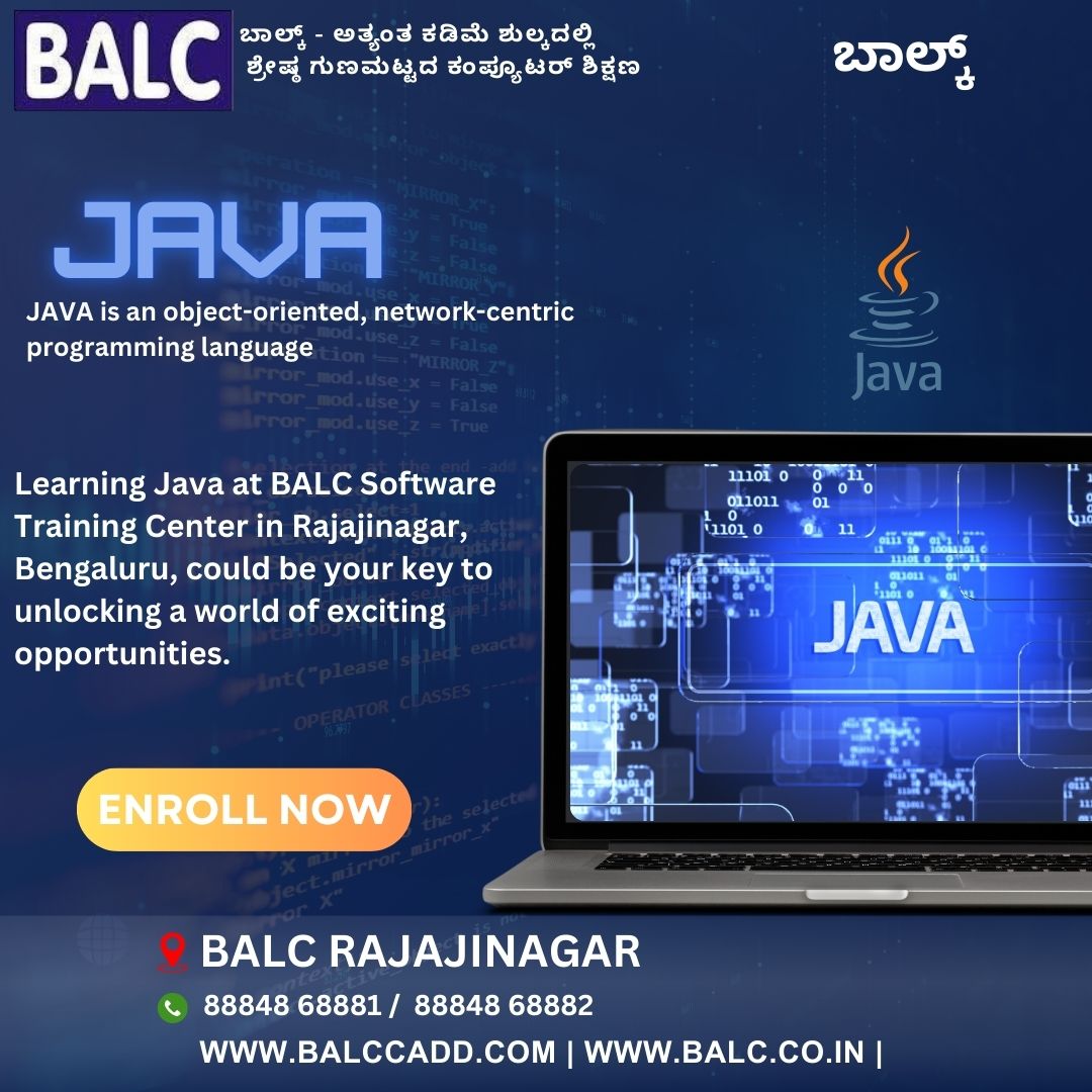 Learning Java at BALC Software Training Center in Rajajinagar Bengaluru, could be your key to unlocking a world of