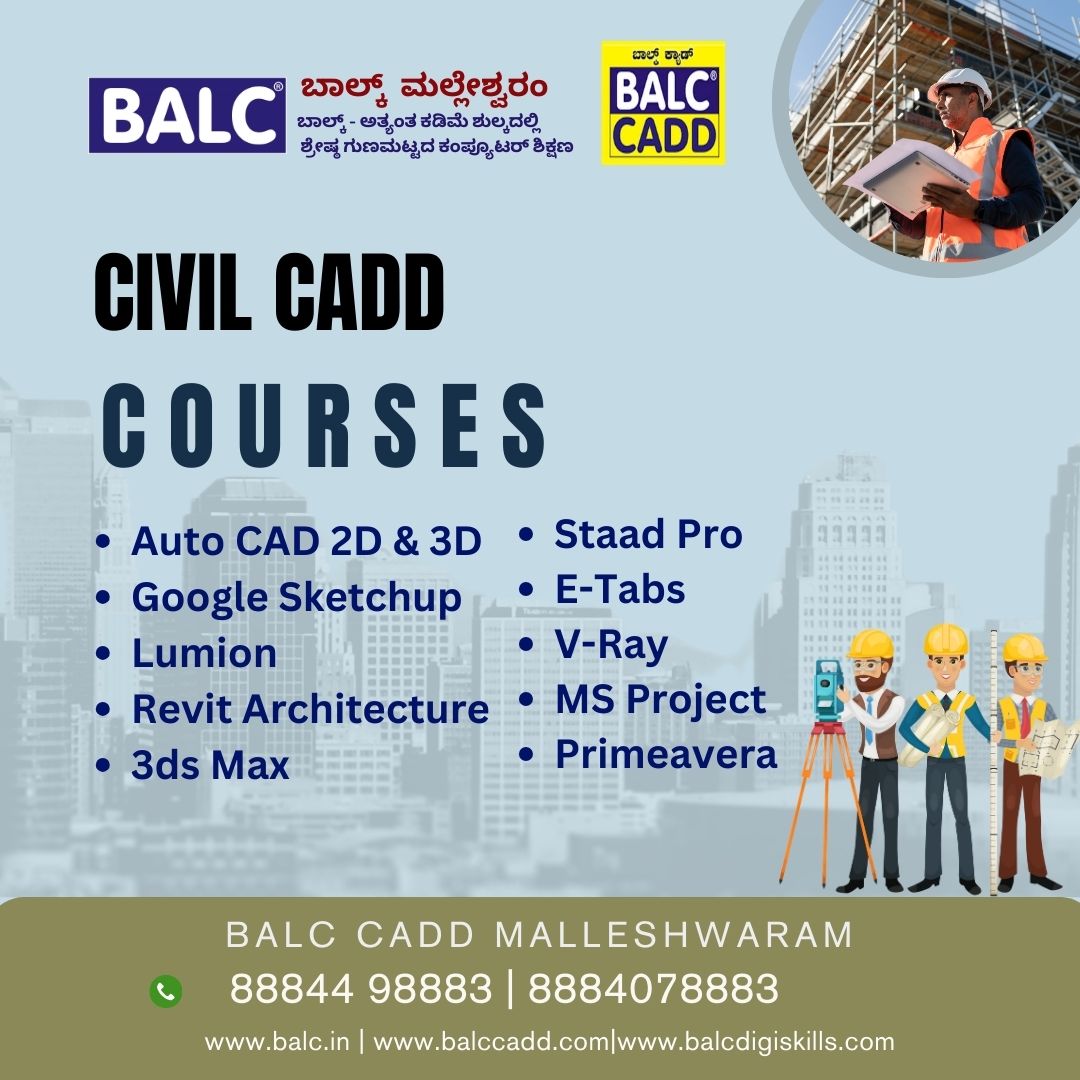 Level Up Your Civil Engineering with CAD , Start at BALC CADD Malleshwaram Bengaluru.