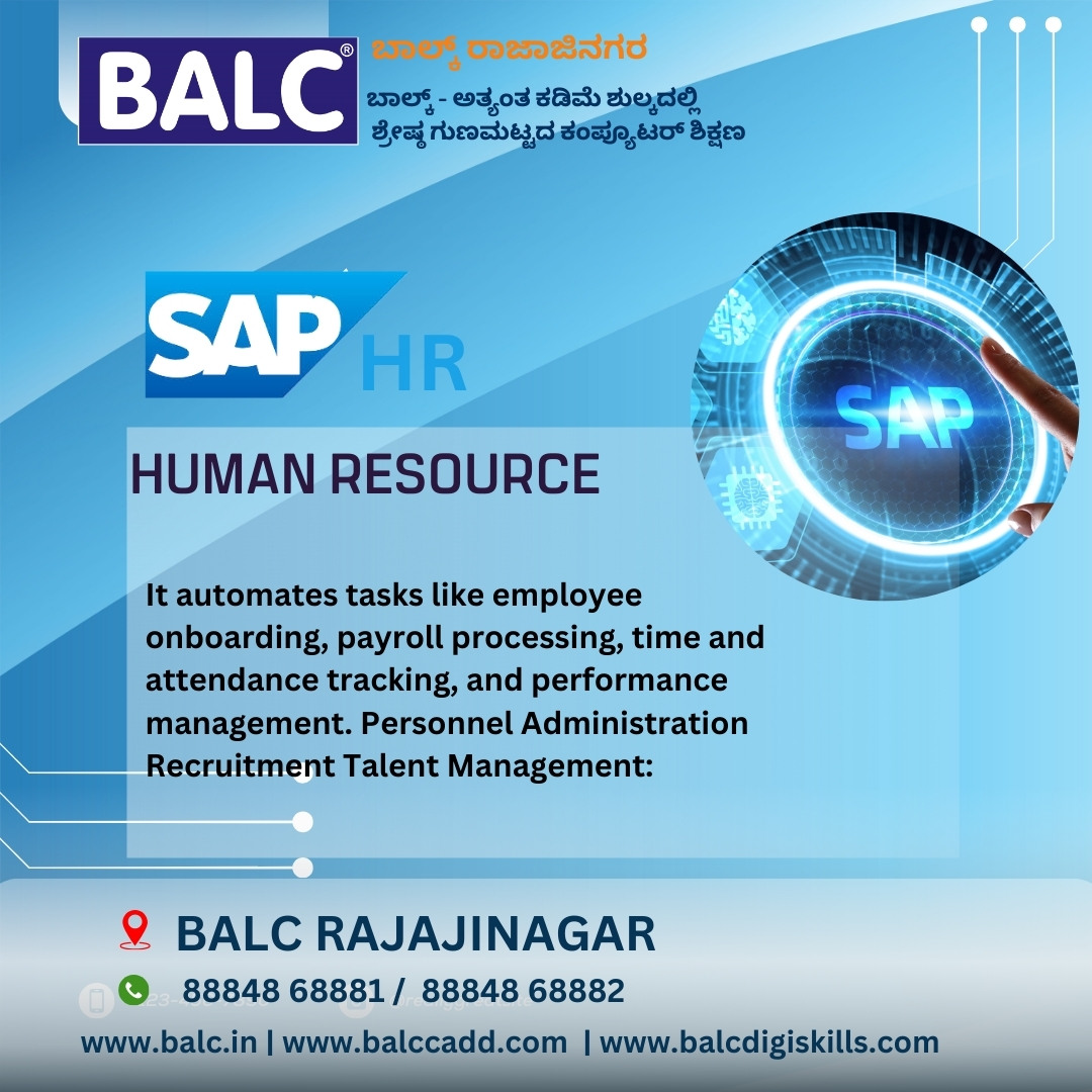 SAP HR: Shape the Future of Work. Start Learning at BALC Software Training Institute ,Rajajinagar, Bengaluru.
