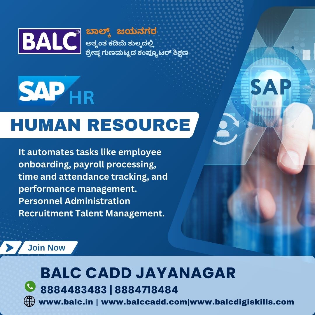SAP HR : Where Business Meets Technology. Start Learning at BALC Training Centre ,Jayanagar, Bengaluru.