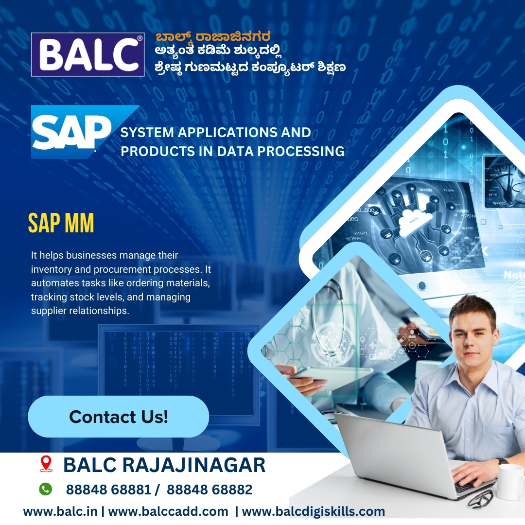 By implementing SAP MM, businesses can gain a competitive advantage by improving their supply chain. Start Learning at BALC Software Training Centre Rajajinagar, Bengaluru.