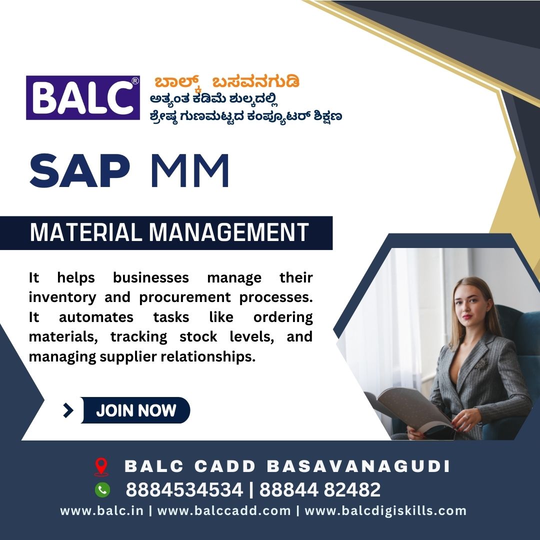 By implementing SAP MM, businesses can gain a competitive advantage by improving their supply chain. Start Learning at BALC Software Training Centre Basavanagudi, Bengaluru.