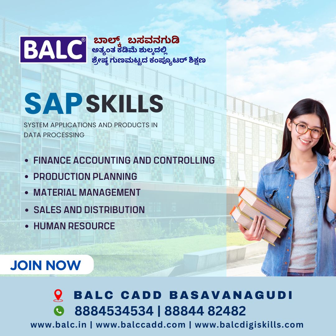 At BALC CADD Training Centre, located in the vibrant Basavanagudi, neighborhood of Bengaluru, we offer a comprehensive SAP FICO course designed to equip students, graduates, and diploma holders with the knowledge and skills needed to excel in this competitive field.