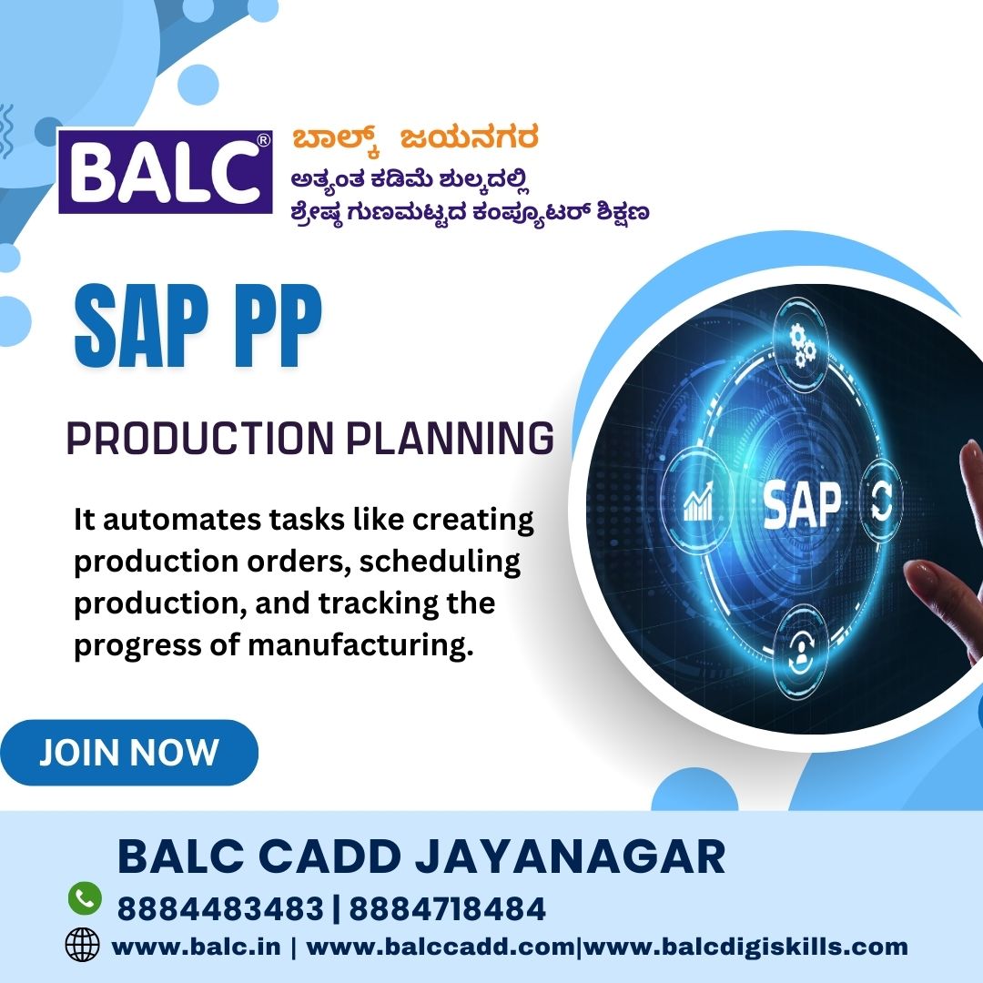 SAP PP: Optimize your production, maximize your potential. Start learning at BALC Software Training Center in Jayanagar , Bengaluru.