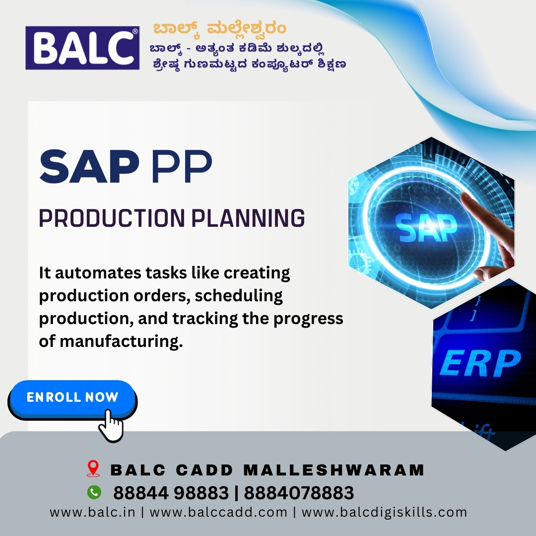 SAP PP: The Skill that Demands, Start learning at BALC Software Training Center in Malleshwaram.