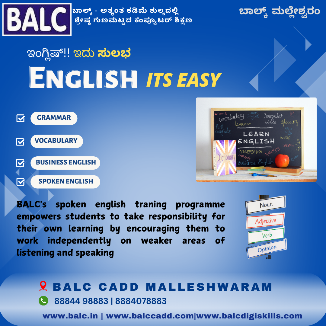 Speak English with Confidence. Believe in Yourself, Start Learning Spoken English at BALC Software Training Center in MALLESHWARAM