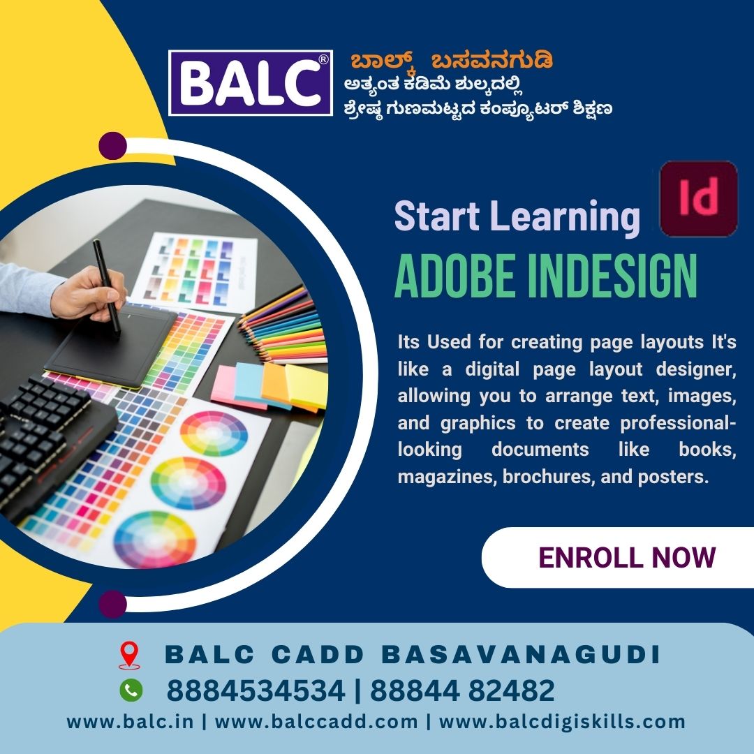 Start Learning Adobe Indesign at BALC training Centre Basavanagudi, Bengaluru.