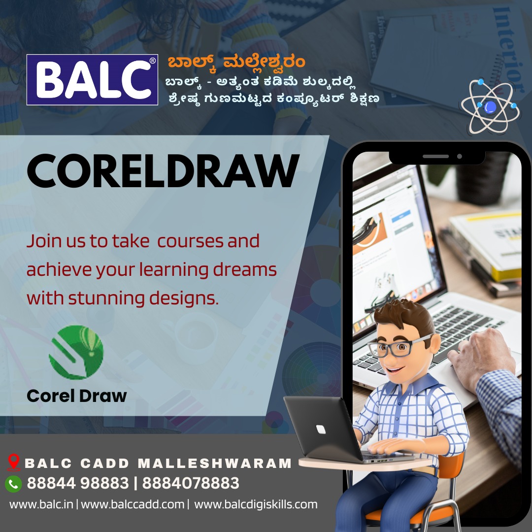 Transform your branding & marketing with CorelDRAW. Start at BALC Software Training Center Malleshwaram, Bengaluru.