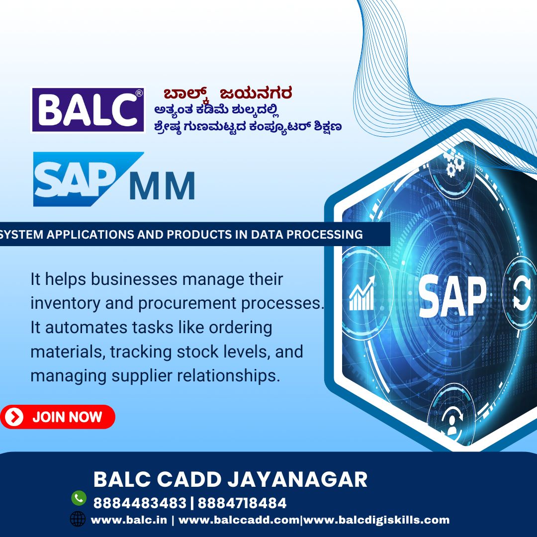 By implementing SAP MM, businesses can gain a competitive advantage by improving their supply chain. Start Learning at BALC Software Training Centre Jayanagar, Bengaluru.